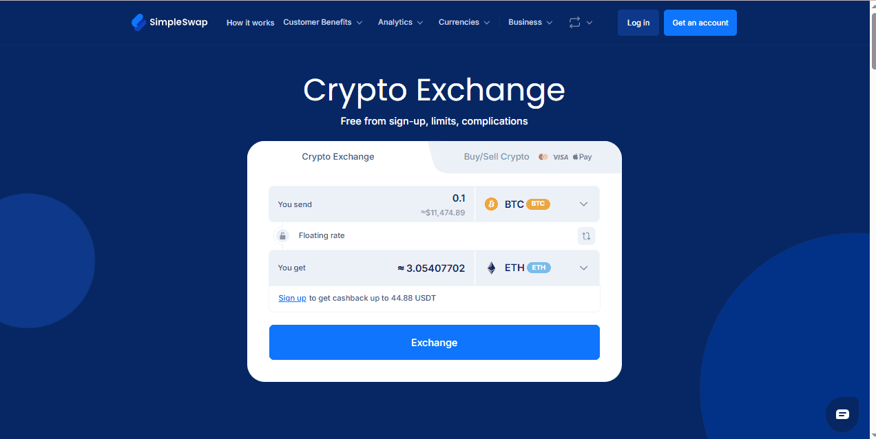 SimpleSwap is tailor-made for newcomers, offering a streamlined interface without requiring any form of registration.