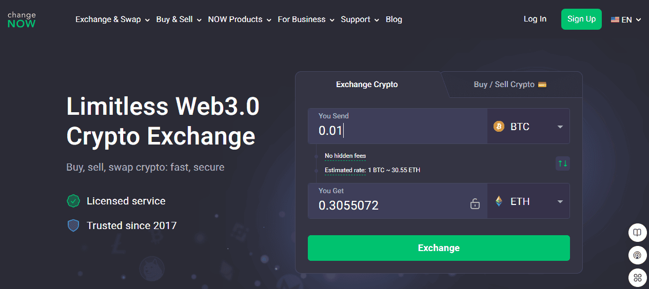 ChangeNOW – Best for Fast Swaps with No Upper Limits