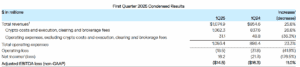 Q1 2025 crypto revenue: $1.0749 billion, up 25.8% year-over-year