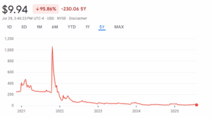 Long-term decline: Down more than 90% from post-merger highs